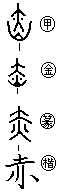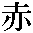 {形}あかい(アカシ)。色があかい。まじりけがなく熱っぽい。「赤子」「赤誠(真心)」「赤心」