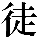 {動}かちありきする(カチアリキス)。一歩一歩と歩く。「徒歩」「徒渉トショウ(歩いて川を渡る)」「舎車而徒=車ヲ舎テテ徒ス」〔→易経〕