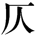 会意。厂(がけ)とそのそばに人がからだをかたむけて寄りそうさまをあらわす。仄は、昃ソク(日が西にかたむく)に音符として含まれる。