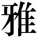 形声。牙ガは、交互にかみあうさまで、交差してすれあうの意を含む。雅は「隹(とり)+音符牙」で、もと、ガアガア・アアと鳴くからすのこと。ただし、おもに牙の派生義である「かみあってかどがとれる」の意に用いられ、転じて、もまれてならされる意味となる。