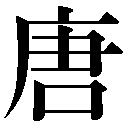 会意。「口+庚(ぴんとはる)」で、もと、口を張って大言すること。その原意は「荒唐」という熟語に保存されたが、単独ではもっぱら国名に用いられる。「大きな国」の意を含めた国名である。