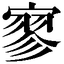 会意兼形声。下部の字(音リョウ)は、鳥の羽がまばらに開いているさま。寥はそれを音符とし、宀(いえ)を加えた字で、家の中がうつろにすいていること。