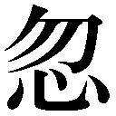 会意兼形声。勿ブツは、吹き流しがゆらゆらして、はっきりと見えないさまを描いた象形文字。忽は「心+音符勿」で、心がそこに存在せず、はっきりしないまま見すごしていること。→勿