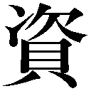 シス{動}たすける(タスク)。とる。金品を用だててたすける。また、金品や条件を与える。あつらえて役だてる。もとでとして利用する。「資生」「資助」「資敵国=敵国ニ資ス」「王、資臣万金=王、臣ニ万金ヲ資ス」〔→国策〕
