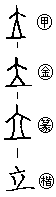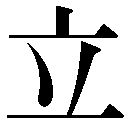 会意。「大(ひと)+―線(地面)」で、人が両足を地につけてたったさまを示す。両手や両足をそろえて安定する意を含む。▽リフ→リュウの音は建立コンリュウの場合に用い、リフ→リツの音は入声ニツショウ(つまり音)を日本で促音ツであらわす習慣によってなまった音。