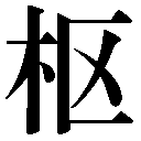 会意兼形声。區(=区)は、まがった囲いとそれに入りくんだ三つのものからなる会意文字。こまごまと入りくんださまをあらわす。樞は「木+音符區」で、細かく細工をして穴にはめこんだとびらの回転軸をあらわす。