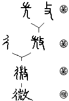 勿ブツ・モチ(ない、見えない)と同系。また、物故(死ぬ)の物(見えなくなる)とも同系。