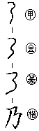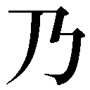 指事。耳たぶのようにぐにゃりと曲がったさまを示す。朶ダ(だらりとたれる)・仍ジョウ(やわらかくてなずむ)の音符となる。また、さっぱりと割り切れない気持ちをあらわす接続詞に転用され、迺とも書く。