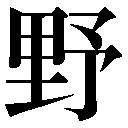 会意兼形声。予ヨは、□印の物を横に引きずらしたさまを示し、のびる意を含む。野は「里+音符予」で、横にのびた広い田畑、のはらのこと。▽古字の埜ヤは「林+土」の会意文字。