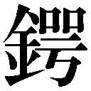 会意兼形声。「金+音符咢ガク(ごつごつする)」。かたい物に、ごつごつと突きささるやいば。
