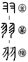 象形。二枚のはねを並べたもので、鳥のからだにおおいかぶさるはね。