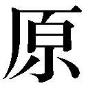 {名}みなもと。もと、岩の穴から水のわき出る泉。のち転じて、物事のもと・起源の意。〈同義語〉→源。「原泉」「原因」「窺仁義之原=仁義ノ原ヲ窺フ」〔→司馬光〕
