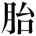 会意兼形声。右側の原字は曲がったすきの棒を描いたもので、道具で仕事をはじめること。台はその下に口を加えた字で、人間がことばを発して行動しはじめることを示す。胎は「肉+音符台」で、肉体が行為をしはじめる、つまり動きはじめた腹の中の赤子(胎児)のこと。