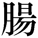 {名}はらわた。消化器官の一部分。細長い管状で、大腸と小腸にわかれている。六腑ロップの一つ。「胃腸」「断腸」「夜雨聞鈴腸断声=夜雨ニ鈴ヲ聞ケバ、腸モ断エナントスル声」〔→白居易〕