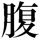 会意兼形声。右側の字(音フク)は「ふくれた器+夂(足)」からなり、重複してふくれることを示す。往復の復の原字。腹はそれを音符とし、肉を加えた字で、腸がいくえにも重なってふくれたはら。