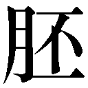 {名}はらご。肉体のできはじめ。腹の中の赤子。胎児のやどるところ。また転じて、物事のもととなるもの。はじめ。「鬼胎」「懐胎(はらむ)」
