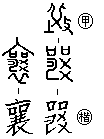 会意兼形声。原字は、中にいろいろなものを入れてまぜることをあらわす会意文字。爻印を含み、まぜあわせることをあらわす。襄は、それを音符とし、衣(外側のおおい)を加えたもので、中に割りこむの意をあらわす。