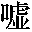 会意。「口+欠(人のからだをかがめた形)」。人がからだを曲げて口から息を押し出すことを示す。→欠