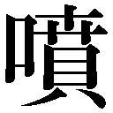 {動}ふく。ぷっとふき出す。「噴出」「子不見夫唾者乎、噴則大者如珠、小者如霧=子ハカノ唾スル者ヲ見ザルカ、噴ケバスナハチ大ナルハ珠ノゴトク、小ナルハ霧ノゴトシ」〔→荘子〕