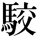 会意。「馬+交(まざる)」。▽もと、駁と別字だが、混用される。