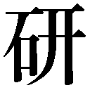 会意兼形声。幵ケンは、二つの物の表面をといで高さをそろえたさまを示す会意文字。研は「石+音符幵」で、石の表面をといで平らにすること。