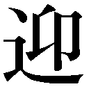 会意兼形声。右側の字(音ゴウ)は「たった人+それに向かってすわった人」の会意文字で、仰(あおぐ)の原字。→の方向に来る相手に、←の方向に進むの意を含む。迎はそれを音符とし、