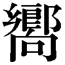 会意兼形声。向は、窓穴から空気がむこうへ抜け去るさま。郷は、ごちそうをはさんで、左右から人がむかいあうさまを示す。嚮は「向キョウ+郷キョウ」で、どちらを音符と考えてもよい。むかう、むこうの方角へ動いて去るの意を含む。