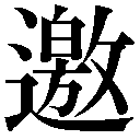 {動}気に入ることをして、上の人から恩恵を受ける。〈同義語〉→要(もとめる)。「邀賞ヨウショウ(賞を受ける)」「邀幸ヨウコウ」