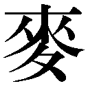 会意兼形声。來(=来)は、穂が左右に出たむぎを描いた象形文字。麥はそれに夂(足)をそえたもの。遠くから歩いてもたらされたむぎをあらわす。がんらい、來が「むぎ」、麥が「くる、もたらす」の意をあらわしたが、いつしか逆になった。賚ライ(もたらす→たまわる)と同系で、神が遠く西方からもたらした収量ゆたかな穀物のこと。来ライと麥バクとは、上古音では同じであった。