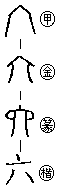 象形。おおいをした穴を描いたもの。数詞の六に当てたのは仮借カシャ(当て字)。▽一説に高い土盛りの形で、陸リク(高い丘)の異体字ともいう。証文や契約書では、改竄カイザンや誤解をさけるため、陸と書くことがある。
