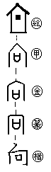 会意。「宀(やね)+口(あな)」で、家屋の北壁にあけた通気孔を示す。通風窓から空気が出ていくように、気体や物がある方向に進行すること。▽姓のときは、ショウと読む。