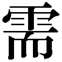 会意。而は、柔らかなひげ(または、ひも)の垂れたさまを描いた象形文字。需は「雨+而(柔らか)」で、雨水にしっとりぬれて柔らかくなり、動きがにぶること。しっとりとぬれて動かず、何かをあてにしてまつ意。