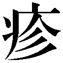 《訓読み》 やむ/やまい(やまひ)/うれい(うれひ)/くるしむ/やましめる(やましむ)/やませる(やます)/くるしめる(くるしむ)
