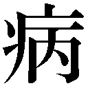 {動・名}やむ。やまい(ヤマヒ)。からだが弾力を失って動けぬようになる。転じて広く、病気になる。また、病気のこと。〈類義語〉→疾。「疾病」「病間」