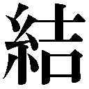 会意兼形声。吉キツは、いれ物の口にしっかりとふたをしたさまを描いた象形文字。結は「糸+音符吉」で、糸やひもで入り口をしっかりとくびること。中みが出ないようにしめくくる意を含む。→吉