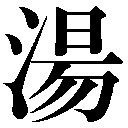 {名}ゆ。ゆげがたちあがるまでに熱した水。また、熱いスープ。「熱湯」「冬日則飲湯=冬日ニハ則チ湯ヲ飲ム」〔→孟子〕