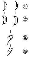 象形。三日月の姿を描いたもの。夜ヤと同系で、月の出る夜のこと。▽もとの字体は月と同じだが、ことばとしては別。