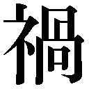{名}わざわい(ワザハヒ)。思わぬおとし穴。思いがけなく受けるふしあわせ。〈対語〉→福。〈類義語〉→災。「禍福」「禍兮福之所倚=禍ハ福ノ倚ル所ナリ」〔→老子〕