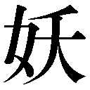 {名}なまめいた女のお化け。転じて、広く人をたぶらかす化け物。「妖怪ヨウカイ」