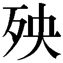 {動・名}ふさがる。くるしむ。物事が行きづまる。困難にぶつかる。困難。〈同義語〉→厄。「阨窮ヤクキュウ」