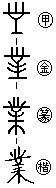 会意。原字は「木+土+人が両手を差しのべたさま」。人が植物を土にうえ育てることを示す。不要な部分や枝葉を刈り捨ててよい形に育てること。刈と同系のことば。のち、艸をつけて、さらに藝の字となった。