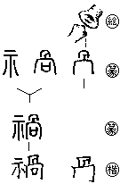 会意兼形声。骨の字の上部は、関節骨がはまりこむまるい穴のこと。咼カ(まるい穴)はそれと口印(穴)を合わせた字で、まるくくぼんだ穴のこと。禍は「示(祭壇)+音符咼」で、神のたたりを受けて思いがけない穴(おとしあな)にはまること。