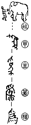 会意。爲の原字は「手+象」で、象に手を加えて手なずけ、調教するさま。人手を加えて、うまくしあげるの意。転じて、作為を加える→するの意となる。また原形をかえて何かになるとの意を生じた。