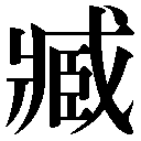 会意兼形声。臣を除いた部分(音ソウ・ショウ)は、すらりと長いやり。臧はそれを音符とし、臣(どれい)を加えた字で、背の高いどれい。また、すらりとしたの意から、裝(=装。かっこうがよい)の意にも用い、よいの意となる。