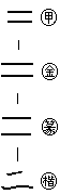 指事。二本の横線を並べたさまを示すもので、二つの意を示す。▽弍・貳(=弐)は、古文の字体で、おもに証文や、公文書で改竄カイザン・誤解を防ぐために用いる。