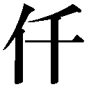 【仟】 5画 人部  区点=4834 16進=5042 シフトJIS=98C0 《音読み》 セン〈qin〉 《意味》 {名}千人を率いる隊長。また、千人の部隊。 {数}数で千のこと。〈同義語〉→千{名}秦シンの制度で、畑に南北に通じた道。東西の道を「佰ハク」という。〈同義語〉→阡。 《解字》 会意兼形声。「人+音符千」で、千人一組の隊。また、その隊長を意味する。五人組を伍ゴといい、十人組を什ジュウというのと同類である。▽証文や契約書で、改竄カイザンや誤解をさけるために、「千」のかわりに使うことがある。 《熟語》 →熟語 →下付・中付語
