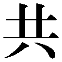 {副}ともに。いっしょに。〈類義語〉→与・→倶グ。「共存共栄」「低頭共耳語=頭ヲ低レテ共ニ耳語ス」〔古楽府〕