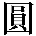 {名}まる。まるい形。〈同義語〉→圜エン。〈対語〉→方・→角。「円心」「方円之器」