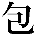 象形。からだのできかけた胎児(巳)を、子宮膜の中につつんで身ごもるさまを描いたもの。胞(=胞。子宮でつつんだ胎児)の原字。