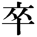 {形・副}にわかに(ニハカニ)。急なさま。突然に。〈同義語〉→猝。「卒然」「卒中(急にのぼせて中風になる)」「卒起不意、尽失其度=卒カニ起コリ不意ナリ、尽クソノ度ヲ失フ」〔→史記〕